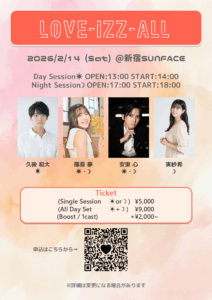 安東心企画、年1イベント「LOVE-IZZ-ALL」の詳細情報・申込ページです。